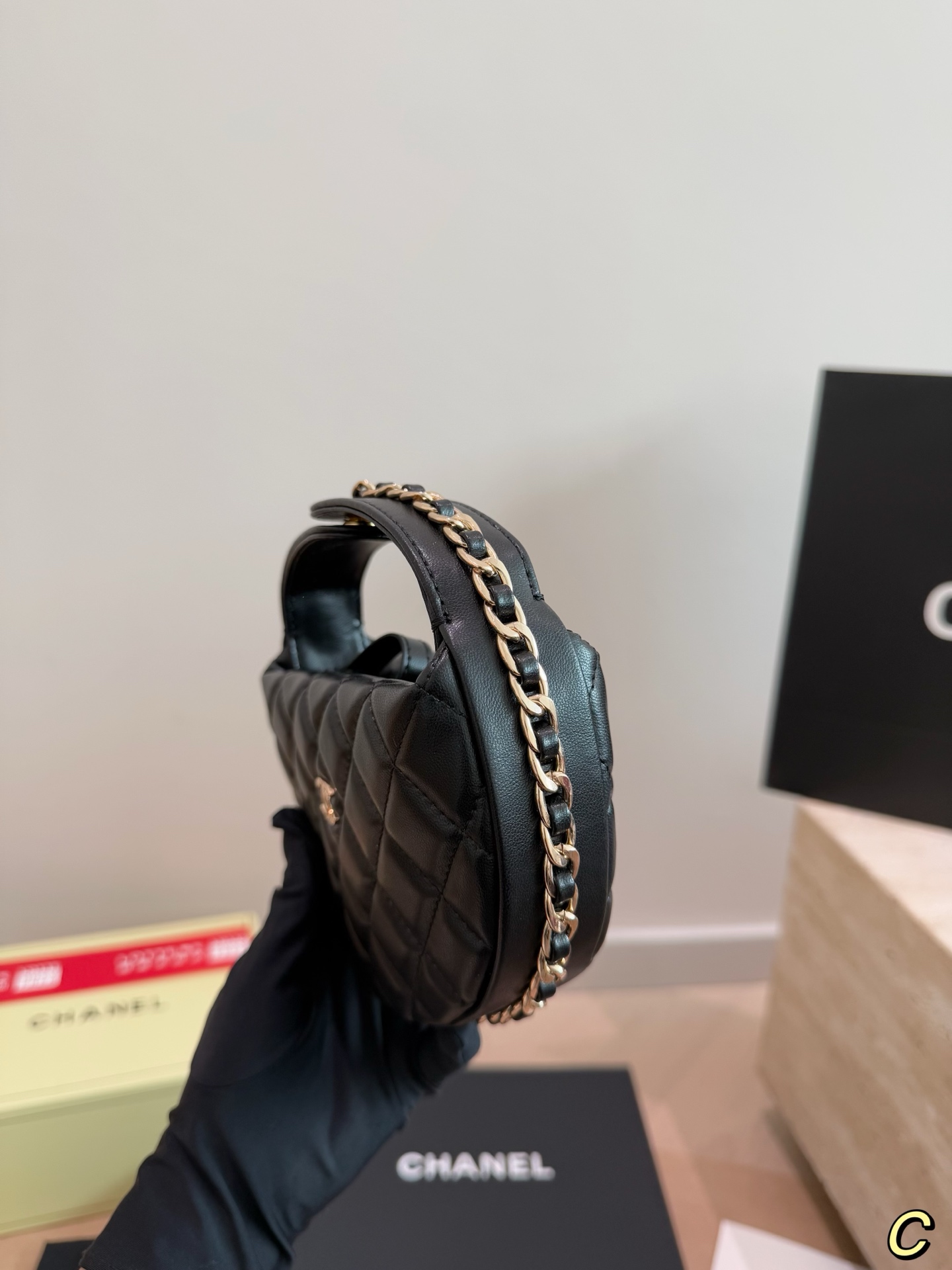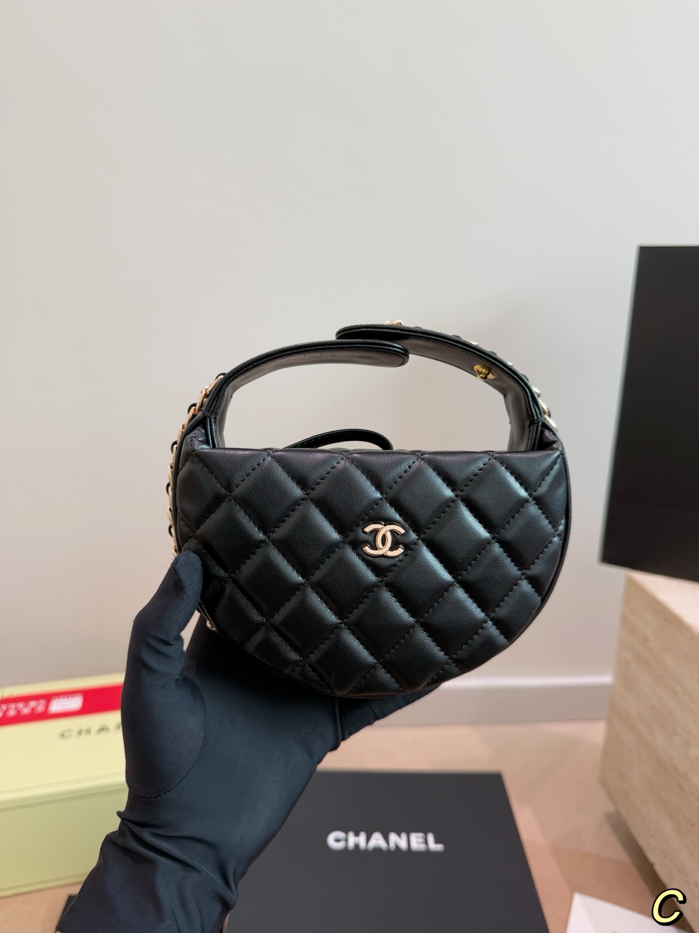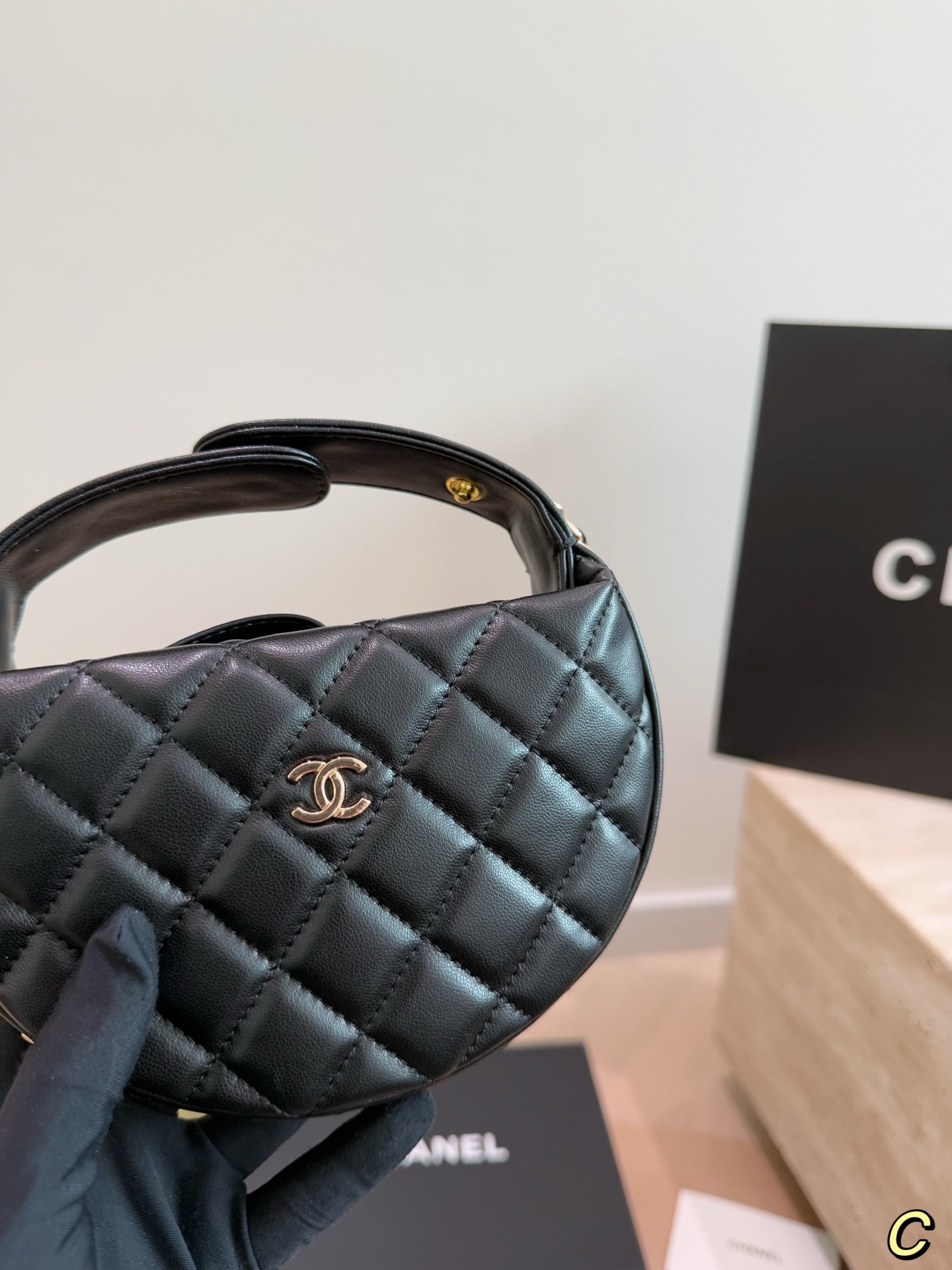 CHANEL 23C フラフープ ブラック×ゴールド ハンドバッグ シャネル好きさん必見!