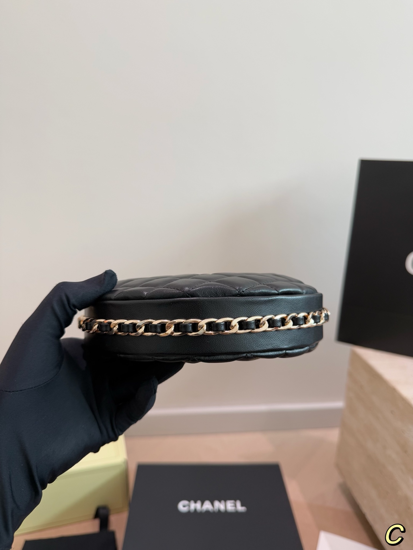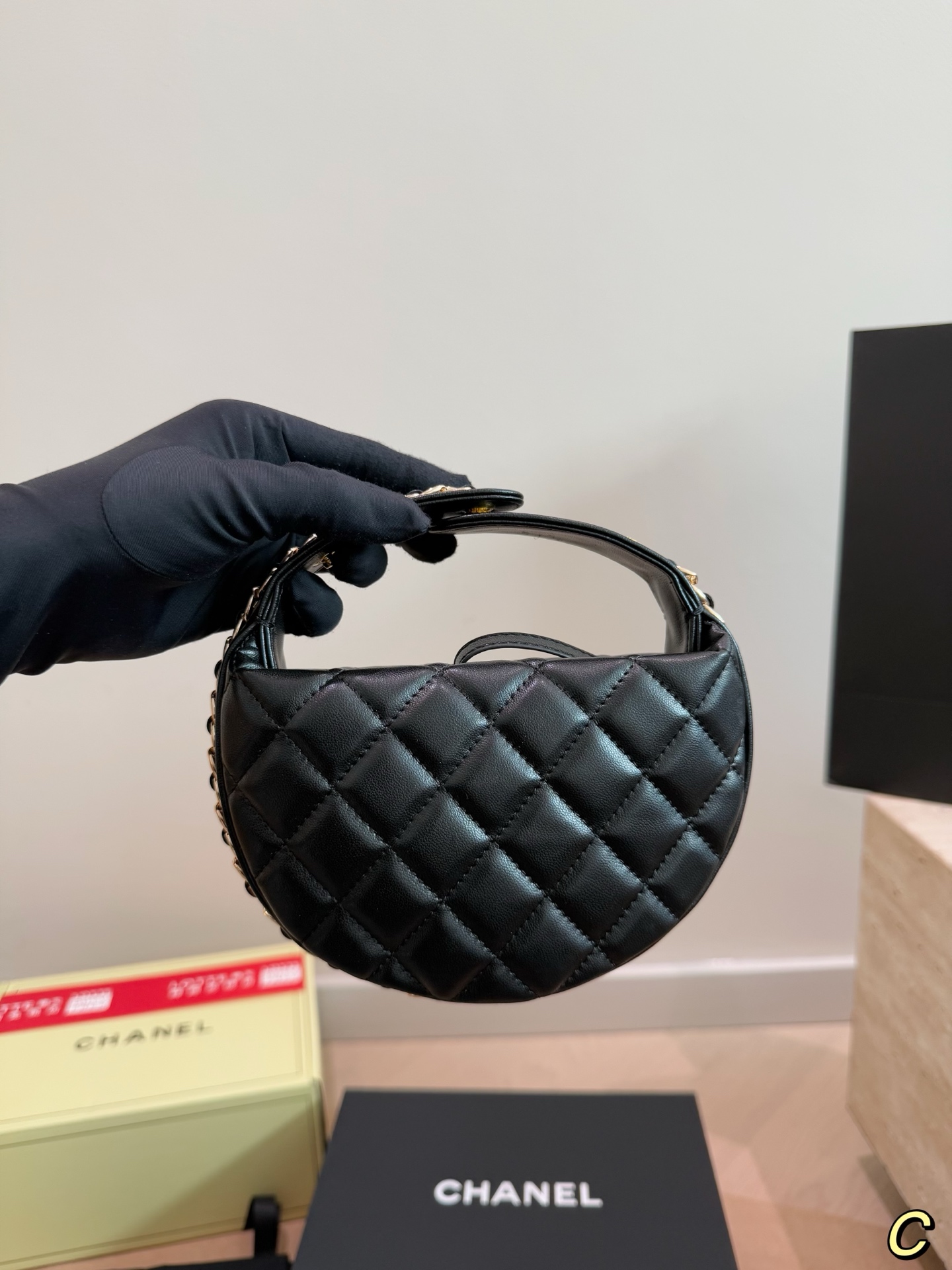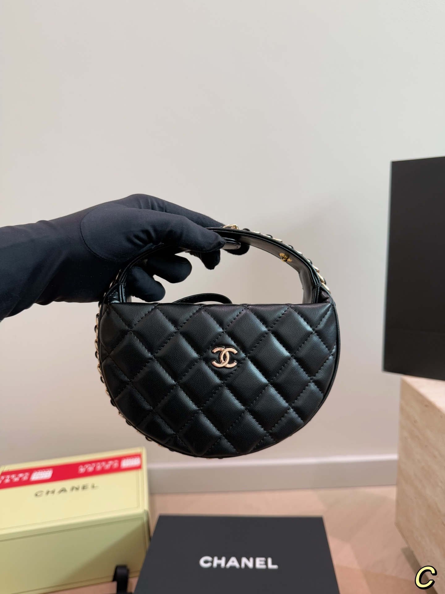 CHANEL 23C フラフープ ブラック×ゴールド ハンドバッグ シャネル好きさん必見!